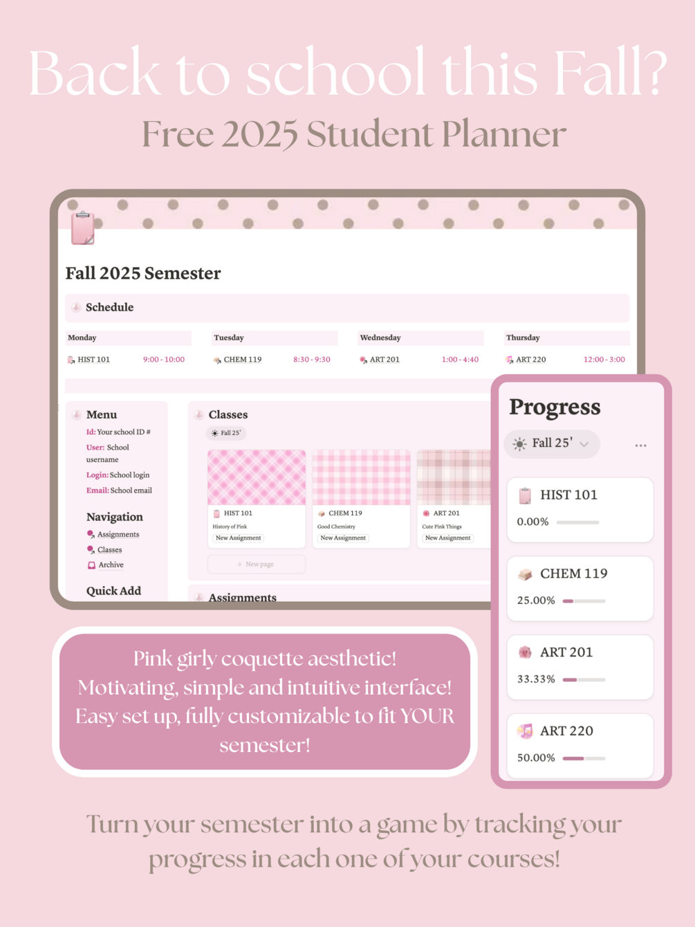 Romanticize your semester with this super cute and aesthetic pink-themed student planner!